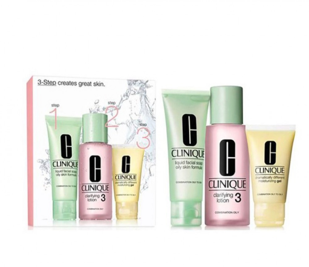 Contents: Dramatically different gel size 30ml, Clarifying lotion type 3 size 100ml, liquid facial soap for oily skin size 50ml